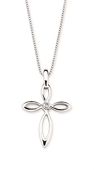 Diva Diamonds® Cross Pendant In Sterling Silver With .01 Ct. Diamond With 18" Box Chain (Adjustable To 16") And Lobster Claw Clasp Diva Diamonds?? Cross