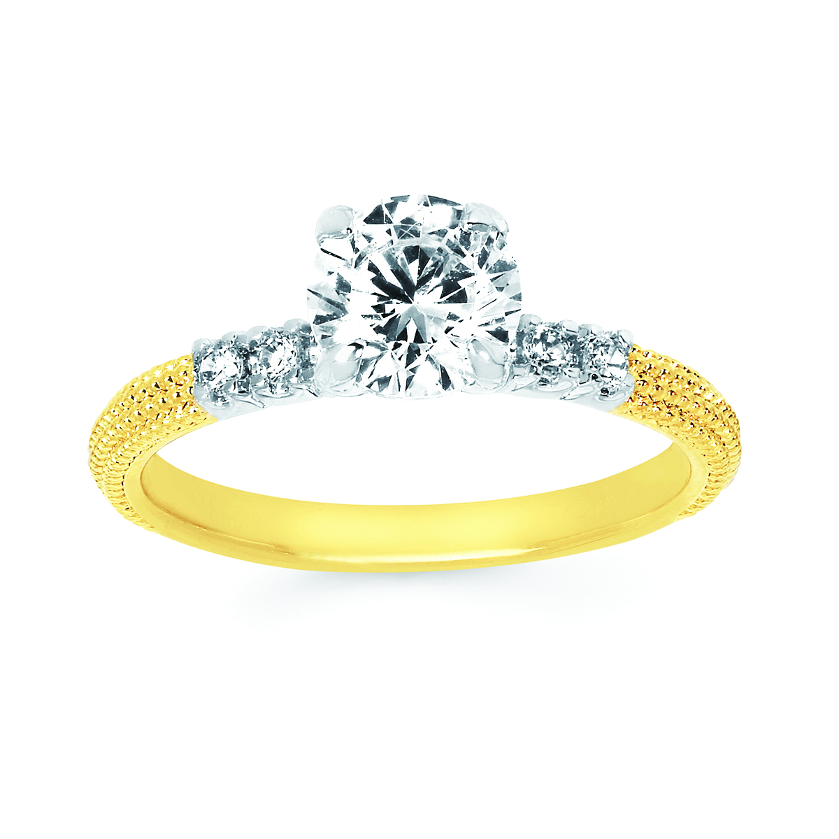 Engagement Ring Classic Bridal: 1/8 Ctw. Diamond Semi Mount shown with 1 Ct. Round Center Diamond in 14K Gold