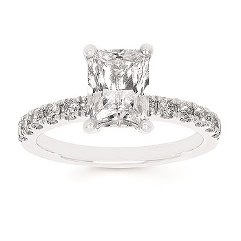 Classic Bridal: 3/8Ctw. Diamond Mounting With 2Ct. Lab Grown Radiant Center Diamond In 14K Gold