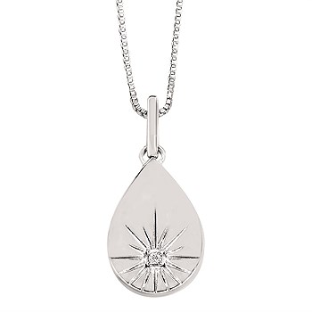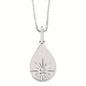Diamond Teardrop Disc Pendant In Sterling Silver With 18" Chain